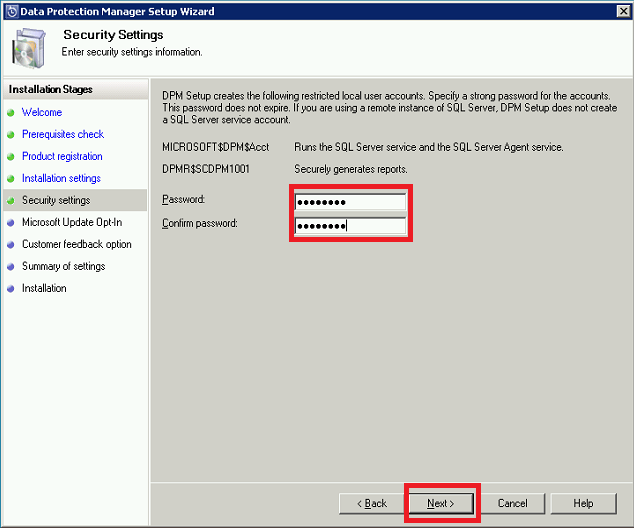 In case of local SQL installation, SQL service accounts are automatically created during installation, and for which passwords are requested: