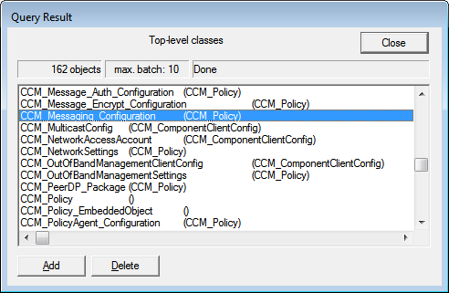 - In the Query Result dialog box, double-click CCM_Messaging_Configuration.DummyKey=1.