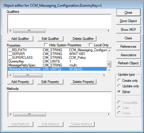 - In the Object editor for CCM_Messaging_Configuration.DummyKey=1 dialog box, double-clickMessageSizeThreshold.