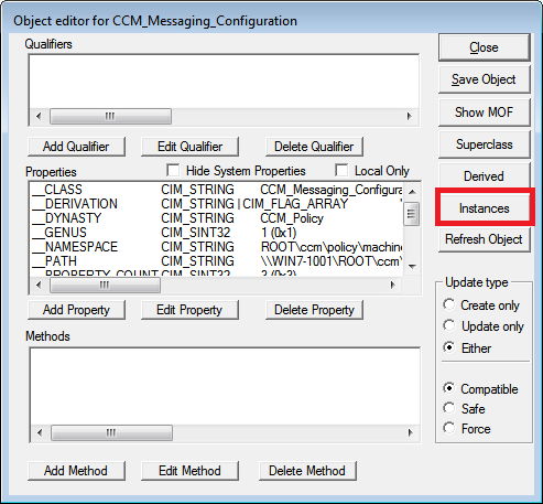 - In the Object editor for CCM_Messaging_Configuration dialog box, click Instances.