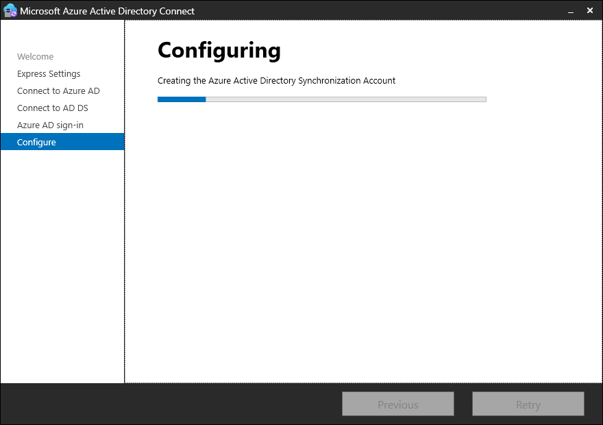 Once the AdSyncConfig module is imported, restart the installation wizard again and the error should be resolved.